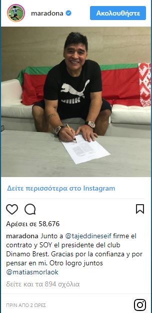 Ιδού το ποστάρισμα-ανακοίνωση του Μαραντόνα που υπογράφει το νέο του συμβόλαιο: