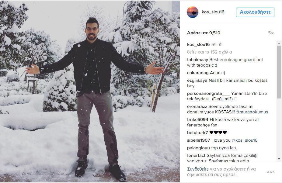 Και όπως θα δείτε στη φωτογραφία που ανέβασε στον προσωπικό του λογαριασμό στο Instagram, ο Έλληνας διεθνής απολαμβάνει το χιόνι.