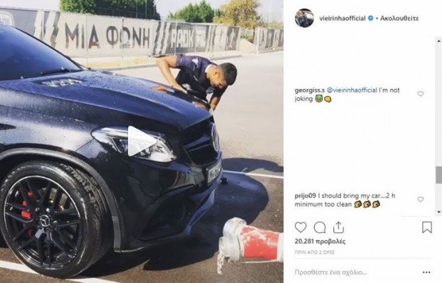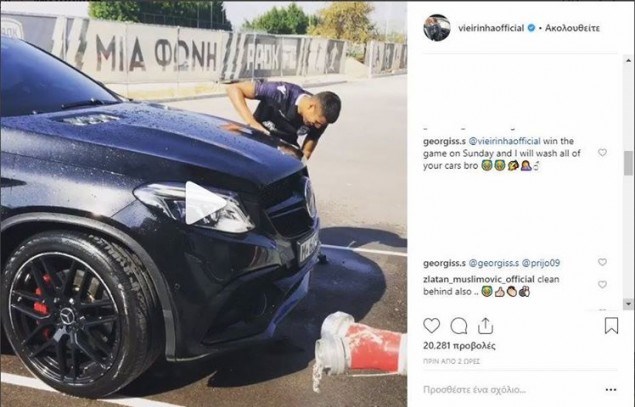 Στην παρέα μπήκε και ο Αλεξάνταρ Πρίγιοβιτς, σχολιάζοντας: «Θα έπρεπε να φέρω το αμάξι μου. Δύο ώρες πλυσίματος σίγουρα», ενώ ο Ζλάταν Μουσλίμοβιτς έσπευσε να δώσει οδηγίες στον Μάτος, προκειμένου να το γυαλίσει.