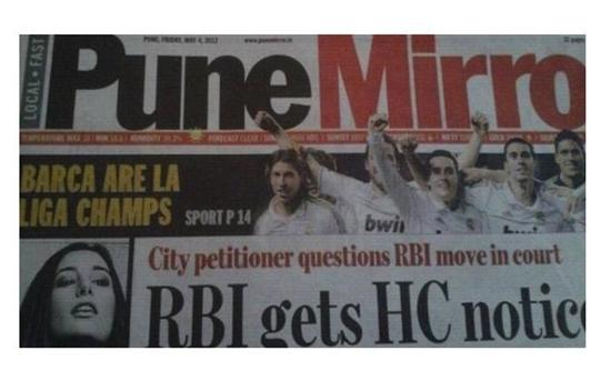 Εφημερίδα στην Ινδία ανακήρυξε πρωταθλήτρια τη Μπαρτσελόνα! Μετά το «clasico» στο «Καμπ Νου» έντυπο στην Ινδία είχε γράψει πως στο ντέρμπι σκόραρε ο Ρονάλντο, μόνο που σε φωτογραφία είχε το «φαινόμενο», δηλαδή τον Βραζιλιάνο, ο οποίος έχει σταματήσει το… τόπι! Στο νέο… ατόπημα υπέπεσε η «Maharashtra», η δεύτερη μεγαλύτερη εφημερίδα σε σχήμα ταμπλόιντ στην Ινδία, καθώς φιλοξένησε πανηγυρική φωτογραφία των άσων της «βασίλισσας», αλλά στον τίτλο της έγραψε: «Η Μπαρτσελόνα κέρδισε τους τελευταίους τρεις τίτλους στην Ισπανία». Τίτλος με τον οποίο συ��περαίνει κάποιος πως οι «μπλαουγκράνα» είναι και οι νυν πρωταθλητές της πριμέρα ντιβιζιόν! Ίσως οι Ινδοί να αντιπαθούν τον Ζοσέ Μουρίνιο…Πηγή: pamesports.gr