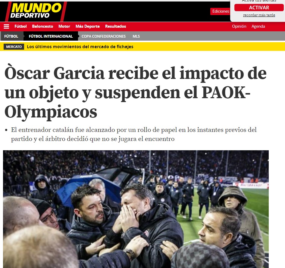 Ο τραυματισμός του Όσκαρ Γκαρθία έκανε τον γύρο της Ευρώπης, με μια σειρά από κορυφαία ειδησεογραφικά Μέσα Μαζικής Ενημέρωσης να αναφέρονται στην περιπέτεια του 44χρονου τεχνικού.