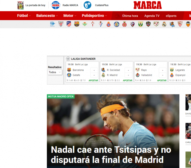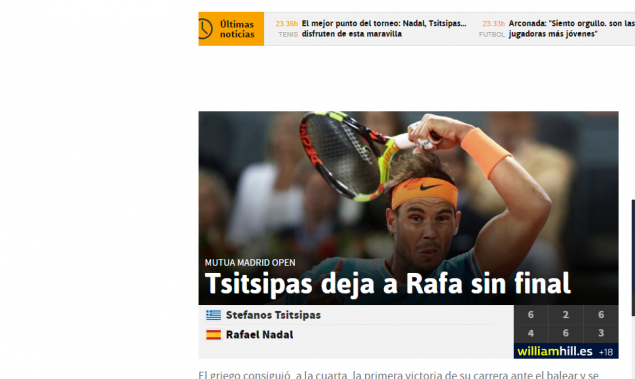 «Ο Ναδάλ έχασε από τον Τσιτσιπά και δεν θα παίξει στον τελικό της Μαδρίτης», αναφέρει η “Marca”.