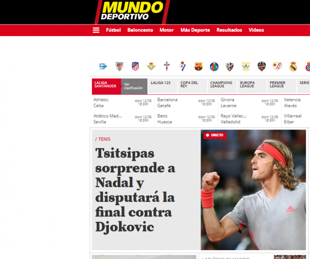 «Ο Τσιτσιπάς εκπλήσσει τον Ναδάλ και θα πηγαίνει στον τελικό ενάντια στον Τζόκοβιτς», σημειώνει η “Mundo Deportivo”.