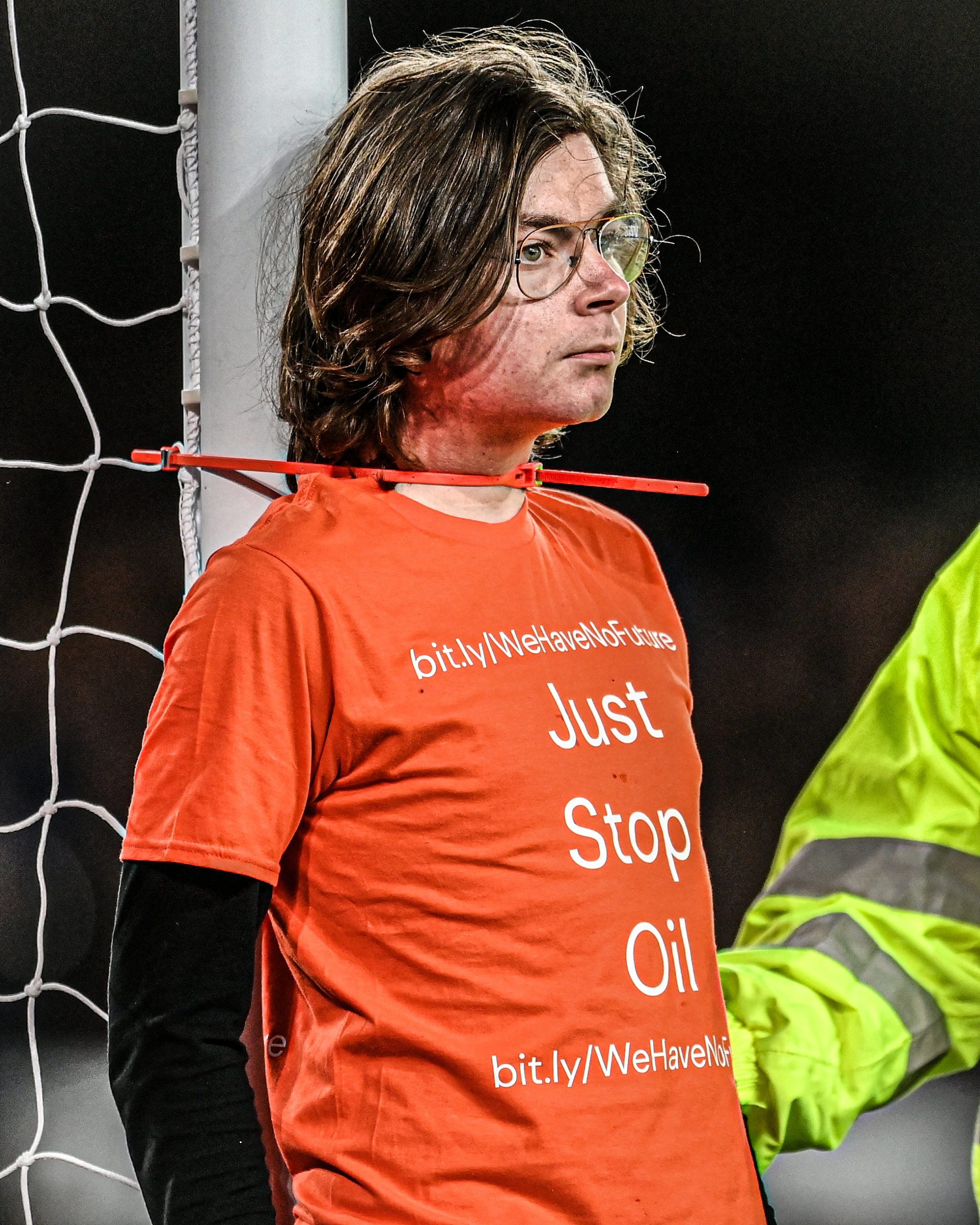 Το παιχνίδι διεκόπη προσωρινά στο 51ο λεπτό μετά από εισβολή ενός άνδρα στον αγωνιστικό χώρο, ο οποίος έδεσε τον λαιμό του στο κάθετο δοκάρι της εστίας των γηπεδούχων. Ο νεαρός φορούσε ένα πορτοκαλί t-shirt το οποίο έγραφε το μήνυμα «Just Stop Oil» (Σταματήστε τα πετρέλαια) και έναν σύνδεσμο για την καμπάνια υπέρ της οποίας διαδήλωνε.
