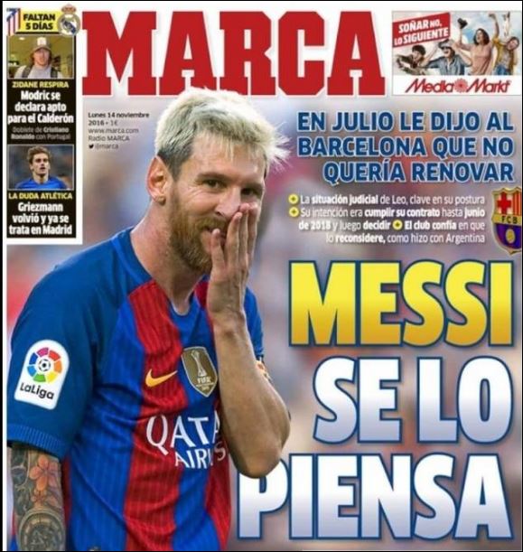 «Φωτιές» άναψε στην Μπαρτσελόνα η μαδριλένικη εφημερίδα, «Marca», η οποία στο σημερινό της πρωτοσέλιδο ανέφερε ότι ο Λιονέλ Μέσι είπε «όχι» στην πρόταση ανανέωσης του συμβολαίου του.
