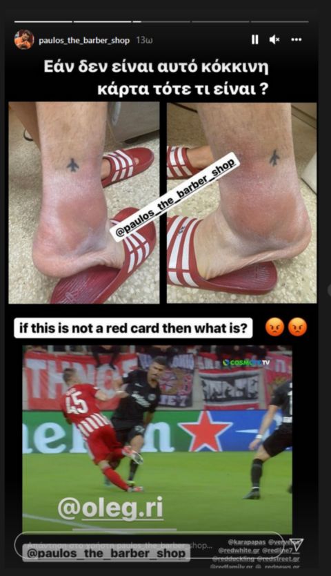 Δύο μέρες μετά το παιχνίδι και το πόδι του Ρέαμπτσιουκ ακόμη δεν έχει επανέλθει αφού πρήστηκε στο σημείο, όπως θα δείτε σε φωτογραφία που ανέβασε ο κουρέας του παίκτη του Ολυμπιακού στα social media.