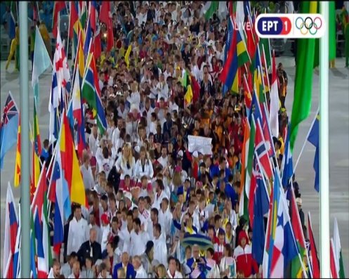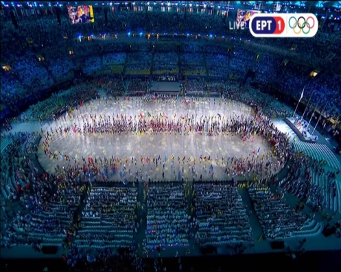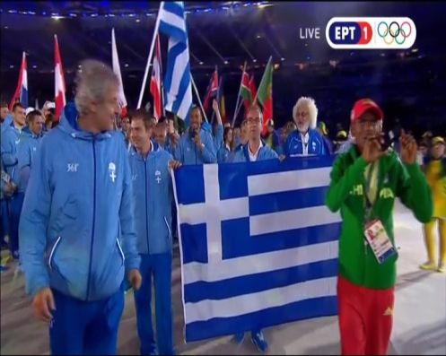 Σημαιοφόρος της ελληνικής αποστολής ήταν η χρυσή Ολυμπιονίκης του άλματος επί κοντώ, Κατερίνα Στεφανίδη.