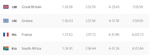 Οι Γιάννης Τσίλης, Γιώργος Τζιάλλας, Διονύσης Αγγελόποπουλος και Γιάννης Χρήστου κατέλαβαν την 3η θέση στη δεύτερη προκριματική σειρά και 5η στην κατάταξη με χρόνο 5:59.65 και πήραν απευθείας την πρόκριση για την επόμενη φάση.
