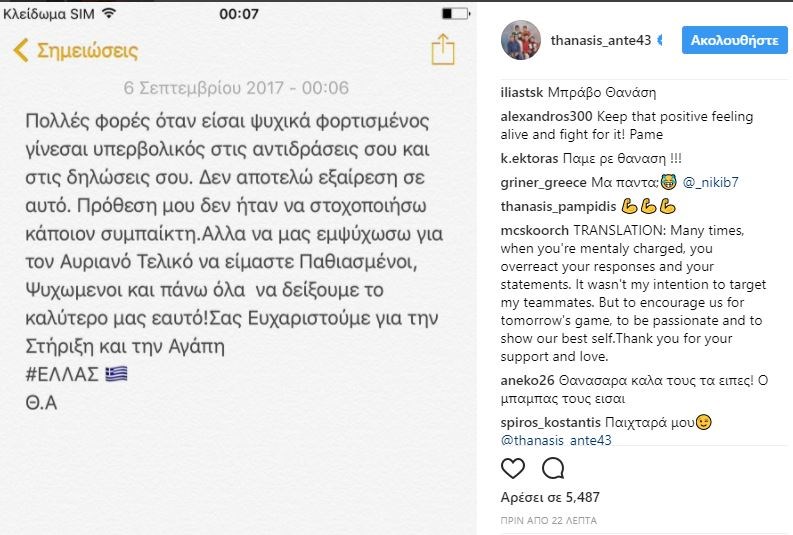 Ο Θανάσης Αντετοκούνμπο έκανε διευκρινιστική δήλωση για το ξέσπασμά του μετά την ήττα από τη Φινλανδία, εξηγώντας ότι δεν ήταν πρόθεσή του να κατηγορήσει κάποιον συμπαίκτη του.