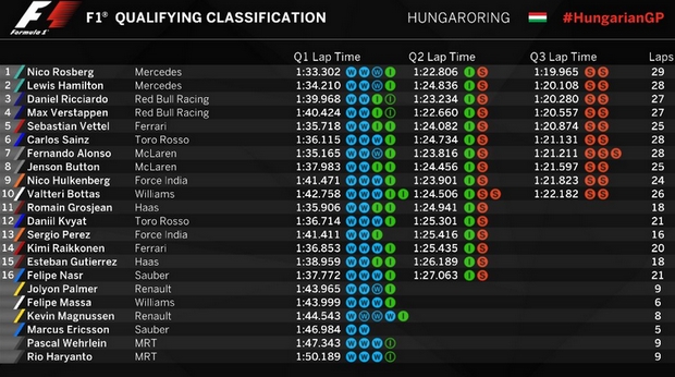 Το καλύτερο το κρατούσε για το φινάλε ο Νίκο Ρόσμπεργκ! Μετά από περίπου δύο ώρες, έντονη βροχόπτωση και την κόκκινη σημαία να… ανεμίζει συνολικά τέσσερις φορές, ο Γερμανός πιλότος της Mercedes έκανε τον καλύτερο χρόνο στο τελευταίο κομμάτι του… μαραθωνίου των κατατακτήριων δοκιμών στην πίστα της Βουδαπέστης και… έκλεψε την pole position από τον ομόσταβλό του, Λιούις Χάμιλτον. Δεύτερος ο Βρετανός πιλότος και τρίτος ο Ντάνιελ Ρικιάρντο με Red Bull.