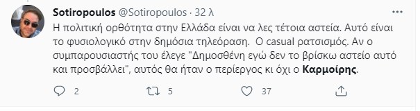 Στο Twitter οι αναρτήσεις έπεσαν βροχή για το εν λόγω ρατσιστικό σχόλιο, όπως το χαρακτήρισαν οι περισσότεροι χρήστες.