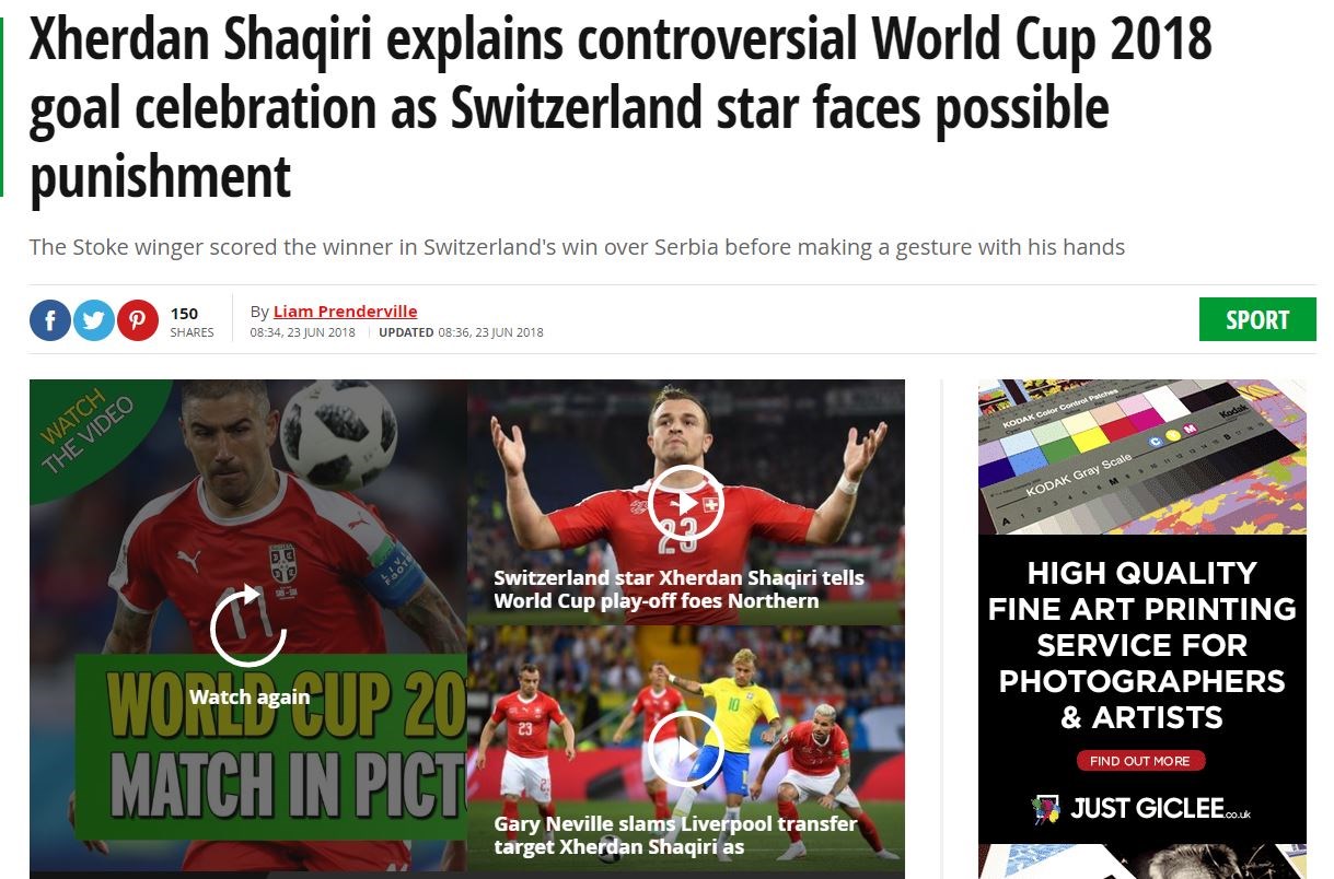 Σε δημοσίευμα της η βρετανική Mirror αναφέρει ότι ο Σακίρι είναι αντιμέτωπος με μία πιθανή τιμωρία εξαιτίας του πανηγυρισμού του αυτού.