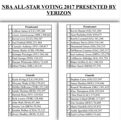 Ο Έλληνας φόργουορντ είναι ένας από τους μόλις επτά παίκτες που έχουν μαζέψει περισσότερες από 500.000 ψήφους. Είναι δεύτερος πίσω από από τον Λε Μπρον Τζέιμς στις επιλογές για φόργουορντ/σέντερ στην Ανατολή, ενώ είναι συνολικά τρίτος στην περιφέρεια έχοντας μπροστά του και τον Κάιρι Ίρβινγκ.