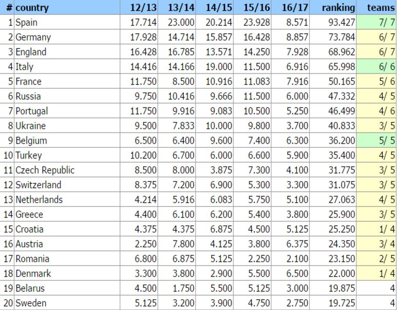 Ευχής έργον θα είναι να παραμείνουμε τουλάχιστον στη 14η θέση, κάτι που είναι πιθανό αφού οι Κροάτες που βρίσκονται στη 15η θέση έχουν μία και μοναδική εκπρόσωπο, τη Ντινάμο Ζάγκρεμπ η οποία αποκλείστηκε από το Champions League και έχει λίγες ελπίδες να συνεχίσει στο Europa.