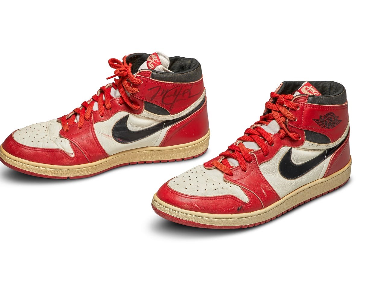 Τα ασπρο-κόκκινα αθλητικά διατίθενται από τον συλλέκτη Jordan Geller, ο οποίος το διάστημα 2010-12 διηύθυνε το «ShoeZeum» στο Λας Βέγκας, με τον ασύλληπτο αριθμό των 2.504 ζευγαριών υποδημάτων. Οι εκτιμήσεις στον Sotheby’s για το πόσο θα αποφέρουν τα αθλητικά του «Air» κάνουν λόγο για ποσό μεταξύ 100.000 και 150.000 δολαρίων. Η διαδικτυακή δημοπρασία συμπίπτει με τα 35α γενέθλια της σειράς Air Jordan της Nike.