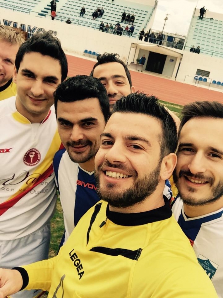 Μια παρέα έγιναν οι παίχτες του Πανναξιακού και της Λάβας Εμπορείου με το διαιτητή της αναμέτρησης πριν από τη σέντρα του ντέρμπι της Νάξου. Ο διαιτητής, Γιάννης Ζαράνης, μάζεψε τους ποδοσφαιριστές για μια αναμνηστική selfie θέλοντας να δημιουργήσει ένα φιλικό κλίμα πριν από το 90λεπτο.