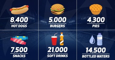 Όπως ενημέρωσε μέσω του επίσημου λογαριασμού της, η αγγλική ομάδα ξεπούλησε τα hot dogs και τα burgers, ενώ εξίσου καλά πήγε και η πώληση των αναψυκτικών. Στις καντίνες, τα «σπιρούνια» κατάφεραν να πουλήσουν 8.400 hot dogs, 5.000 burgers και 21.000 αναψυκτικά.