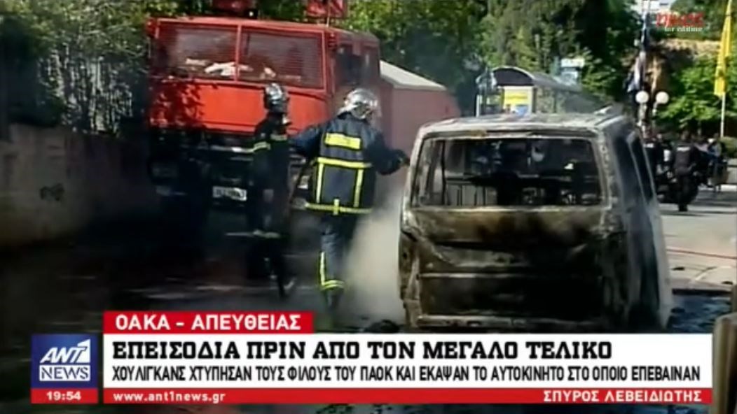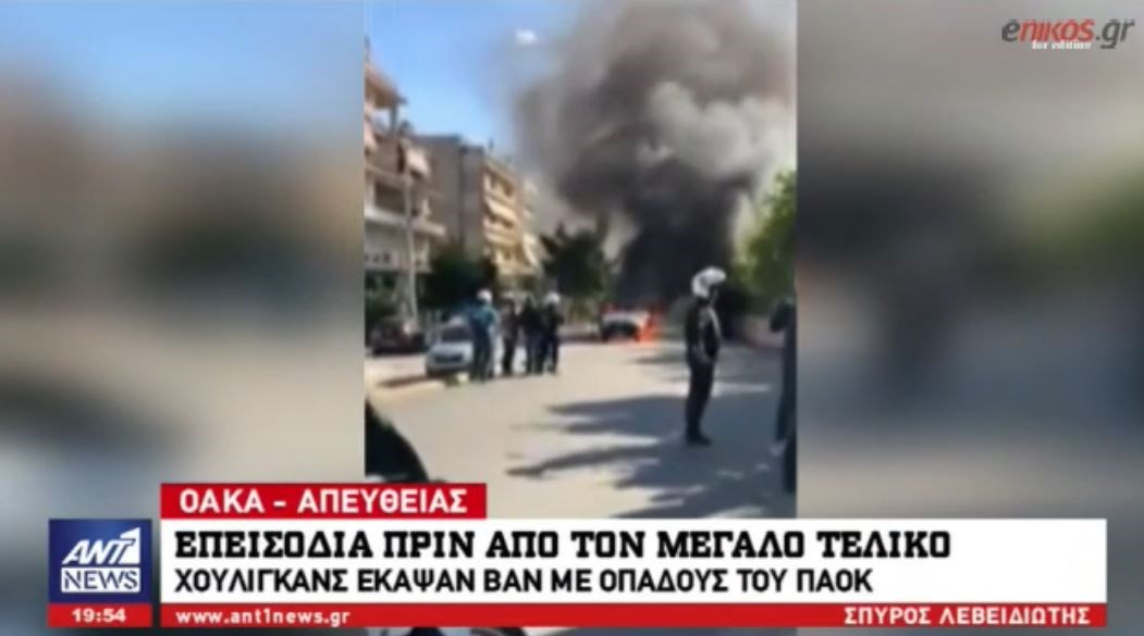 Λίγες ώρες νωρίτερα, χούλιγκαν έκαψαν αυτοκίνητο οπαδών του ΠΑΟΚ που ήταν σταθμευμένο κοντά στο ΟΑΚΑ. Σύμφωνα με πληροφορίες, οι άγνωστοι επιτέθηκαν και με ρόπαλα στους φίλους του ΠΑΟΚ, με αποτέλεσμα όπως μετέδωσε ο ΑΝΤ1 να τραυματιστούν ελαφρά πέντε άτομα.