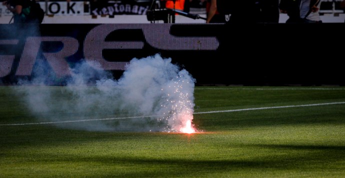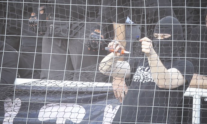 Εν τω μεταξύ, εντός του γηπέδου ορισμένα άτομα στις κερκίδες προσπάθησαν να σπάσουν τα διαχωριστικά πλεξιγκλάς και κάποιοι άλλοι έσκισαν το προστατευτικό δίχτυ.