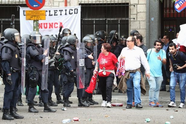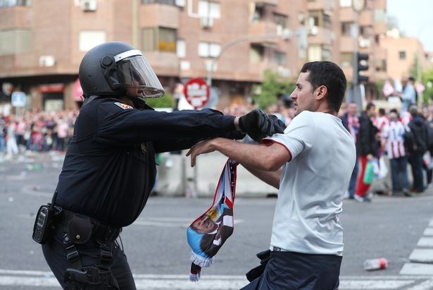 Σύμφωνα πάντα με την εφημερίδα, η αστυνομία δημιούργησε φράγμα για να μην επιτρέψει στους οπαδούς των γηπεδούχων να προχωρήσουν και ενώ νωρίτερα είχαν επιτεθεί σε λεωφορείο που μετέφερε οπαδούς της Ρεάλ.