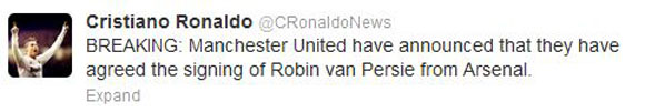 Ο Κριστιάνο Ρονάλντο πανηγυρίζει την υπογραφή του Ρόμπιν Βαν Πέρσι της Άρσεναλ με την Μάντσεστερ Γιουνάιτεντ στο Twitter…