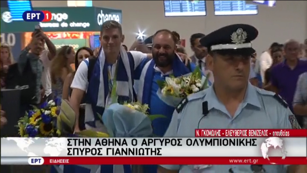 Στην Αθήνα έφτασε ο αργυρός Ολυμπιονίκης του Ρίο, Σπύρος Γιαννιώτης, στα 10.000 μέτρα κολύμβησης ανοιχτής θάλασσας.