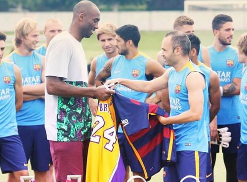 Η Μπαρτσελόνα αυτή την περίοδο βρίσκεται στο Λος Άντζελες στο πλαίσιο της προετοιμασίας της και ο Κόμπι Μπράιαντ δεν έχασε την ευκαιρία να εκδηλώσει για ακόμη μία φορά την αγάπη του για τους «μπλαουγκράνα». Ο αστέρας του NBA επισκέφθηκε την αποστολή της ισπανικής ομάδας, με τους παίκτες και τα μέλη του συλλόγου να τιμούν και αυτοί τον Αμερικανό.