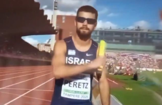 During yesterday’s U20 European Athletics 4×100 final, Israeli athlete Peretz flashed a sickening throat-slitting gesture.