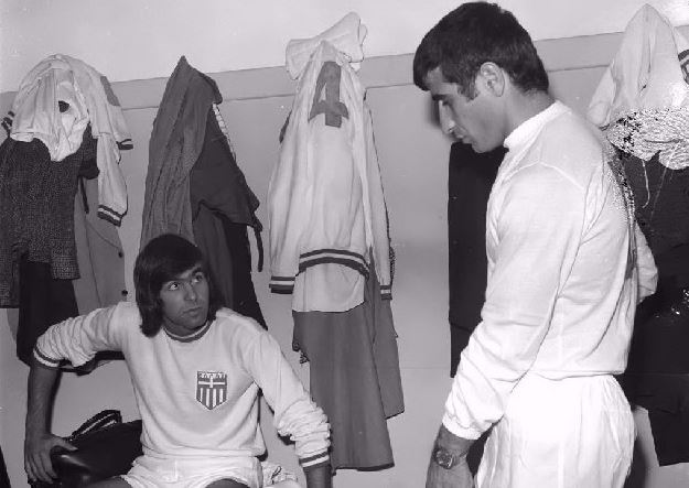 26/3/1975 – Ο Γιώργος Δεληκάρης και ο Μίλτον Βιέρα του Ολυμπιακού αγωνίζονται με την Μικτή Κόσμου κάτω από τις οδηγίες του Ρίνους Μίχελς στις Βρυξέλλες εναντίον της Άντερλεχτ που θα αναδειχθεί νικήτρια με 8-3. Ο αγώνας γίνεται προς τιμήν του βέλγου Πολ Βαν Χιμστ και με την Μικτή αγωνίζονται και οι Πελέ, Κρόιφ, Ζαϊρζίνιο και άλλοι.