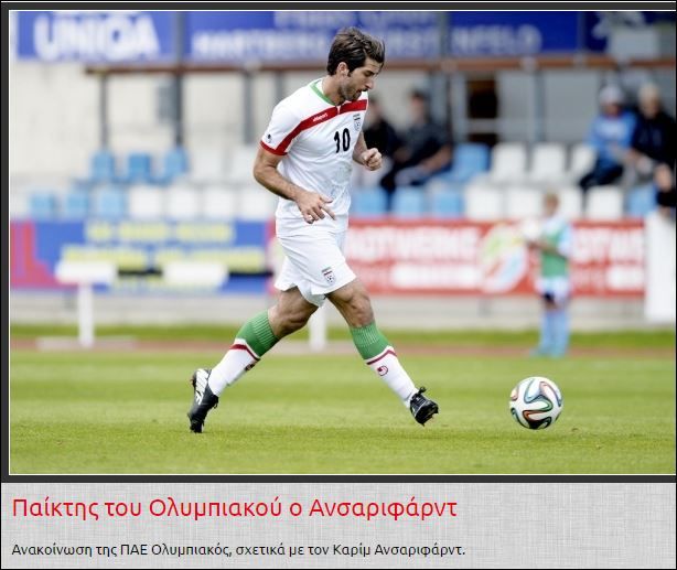 Και με τη βούλα, παίκτης του Ολυμπιακού είναι ο Ιρανός επιθετικός Καρίμ Ανσαριφάρντ, μετά την επίσημη ανακοίνωση της ομάδας.