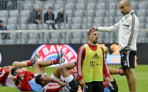 Ο Πεπ Γουαρντιόλα έχει επιβάλει ήδη τη δική του φιλοσοφία στο “στρατόπεδο” των Βαυαρών κάτι που αποδεικνύεται και από την παρακάτω φωτογραφία, στην οποία φαίνονται οι ποδοσφαιριστές των Πρωταθλητών Ευρώπης και Γερμανίας να προπονούνται σε φουλ ρυθμούς και τον Φρανκ Ριμπερί να έχει… γονατίσει από την κούραση.
