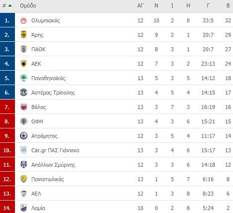 Με δύο παιχνίδια ολοκληρώθηκε σήμερα η 13η αγωνιστική της Super League 1. Στα Ιωάννινα ο ΠΑΣ παραχώρησε ισοπαλία 2-2 στον Αστέρα Τρίπολης, αν και τέλειωσε το ματς με παίκτη λιγότερο. Με το ίδιο σκορ έληξε και η αναμέτρηση της ΑΕΚ με τον Βόλο στη Ριζούπολη.
