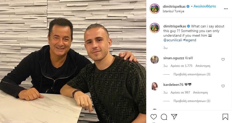 Με τον παραγωγό του Survivor, Ατζούν Ιλιζαλί συναντήθηκε ο άσος της Φενέρμπαχτσε και πρώην παίκτης του ΠΑΟΚ, Δημήτρης Πέλκας. Με τις πολύ καλές του εμφανίσεις στο τουρκικό πρωτάθλημα, ο Έλληνας διεθνής αποτελεί πλέον ένα πολύ αναγνωρίσιμο πρόσωπο στη γείτονα και απολαμβάνει τη ζωή τόσο εντός όσο και εκτός γηπέδων.