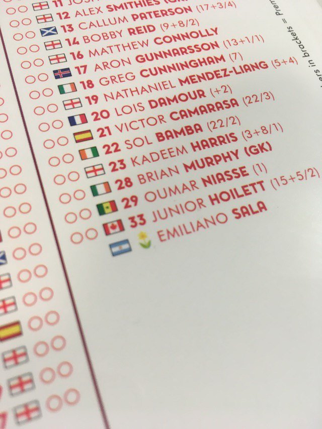 Οι “κανονιέρηδες” προχώρησαν σε μία συγκινητική ενέργεια και συμπεριέλαβαν το όνομα του Εμιλιάνο Σάλα στο ρόστερ των φιλοξενούμενων στο match programme της βραδιάς.