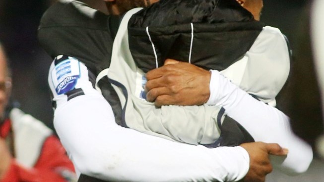 Μόλις είδε τη μπάλα στα δίχτυα έτρεξε προς το μέρος του γιου του που… εκτελούσε χρέη ball – boy προκειμένου να τον αγκαλιάσει, με τους δύό τους να ξεσπούν σε κλάματα.