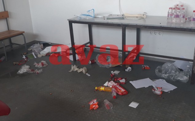 Στις φωτογραφίες που δημοσιεύονται φαίνονται απορρίμματα (μπουκάλια, ποτήρια, γάζες, επίδεσμοι) πεταμένα στο έδαφος, ενώ οι νιπτήρες και οι ντουζιέρες είναι γεμάτες από υπολείμματα του αγωνιστικού χώρου (γκαζόν, χώμα) που προφανώς κόλλησε στα παπούτσια των Ελλήνων διεθνών.