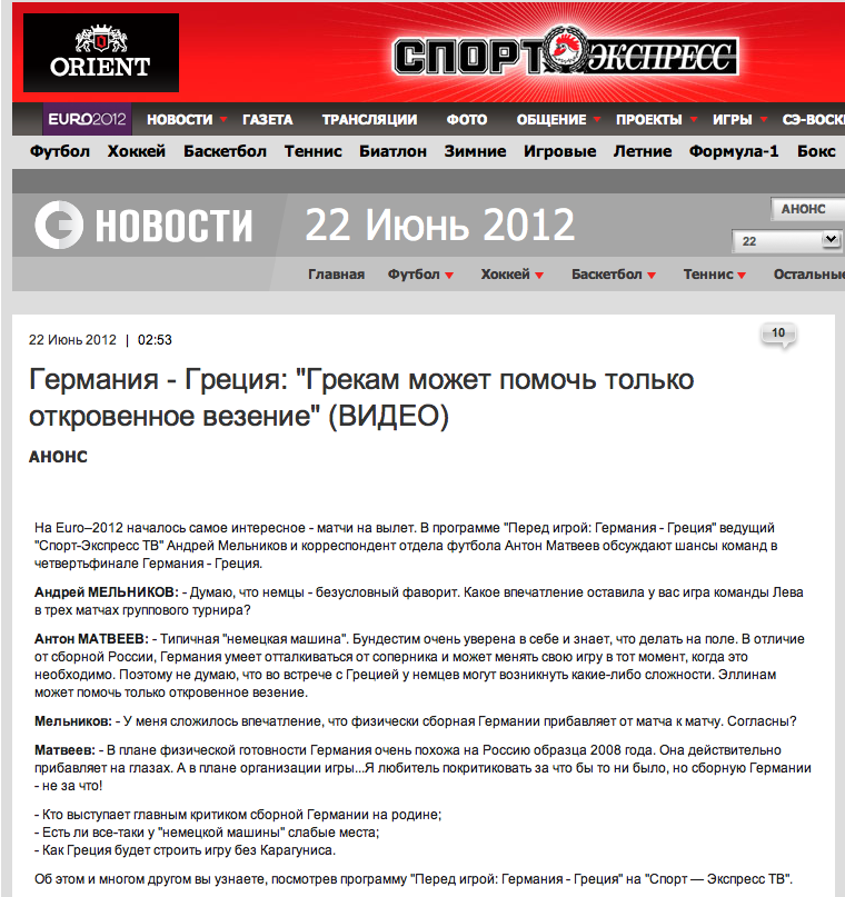 France 24: “Η Ελλάδα στοχεύει στο Euro 2012 «δολοφονία γίγαντα» εναντίον της Γερμανίας”