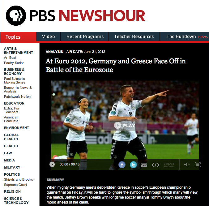 PBS Newshour: “Στο Euro 2012, Γερμανία και Ελλάδα αντιμέτωποι σε μια μάχη της Ευρωζώνης”