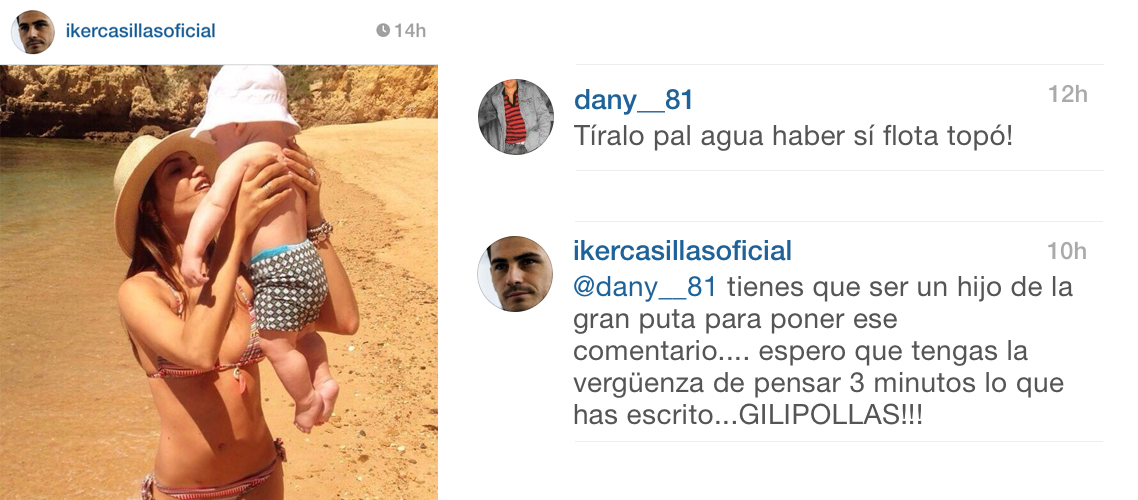 Εκτός εαυτού βγήκε ο Ίκερ Κασίγιας με αφορμή ένα σχόλιο κάτω μια φωτογραφία του γιου του, που ανέβασε η σύντροφός του Σάρα Καρμπονέρο στο instagram .