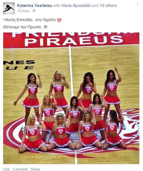 Με τις ευχές όλης της ομάδας ρίχνεται στην αποψινή μάχη κόντρα στην ΤΣΣΚΑ ο Ολυμπιακός. Οι τσιρλίντερς των «ερυθρολεύκων» έστειλαν τις ευχές τους μέσω Facebook με την ελπίδα οι Πειραιώτες να επιστρέψουν την Κυριακή από την Μαδρίτη με το τρόπαιο.