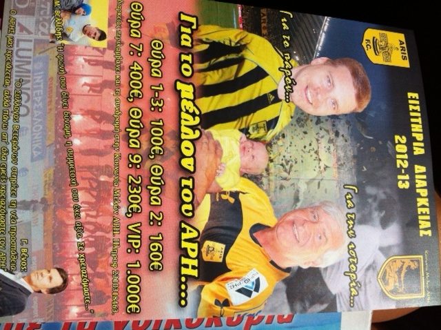 Κάθε μέσο επιστρατεύουν οι «κίτρινοι» προκειμένου να τονώσουν την πώληση των εισιτηρίων διαρκείας του ποδοσφαιρικού ΑΡΗ.Το συγκεκριμένο φυλλάδιο διανέμεται αυτή την ώρα σε φανάρια της πόλης της Θεσσαλονίκης, στους εκδρομείς που ταξιδεύουν για Χαλκιδική.
