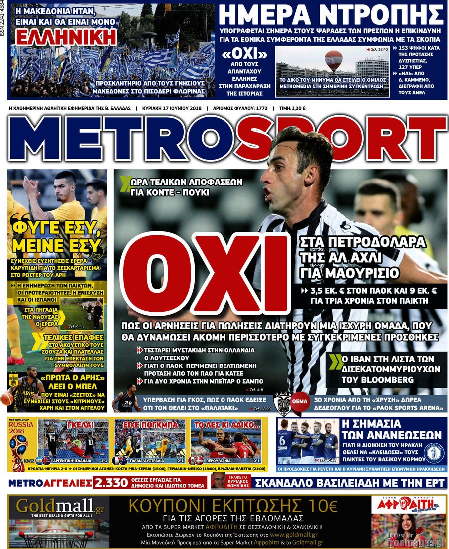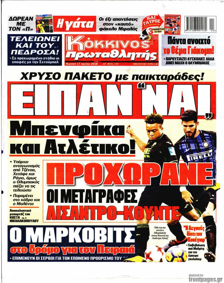 Οι αθλητικές εφημερίδες 17/6/2018 Enikos Newsroom 07:19, Κυριακή 17 Ιουνίου 2018 αθλητισμός Διαβάστε τα πρωτοσέλιδα ΑΘΛΗΤΙΚΕΣ ΕΦΗΜΕΡΙΔΕΣ Μοιράσου το: σχολίασε κι εσύ (0 σχόλια) Ακολουθήστε το enikos.gr στο Google News και μάθετε πρώτοι όλες τις ειδήσεις Δείτε όλες τις τελευταίες ειδήσεις από την Ελλάδα και τον Κόσμο στο enikos.gr Ειδήσεις Ροή Ειδήσεων 43 λεπτά πριν Υπόθεση Έπσταϊν: Το Υπουργείο Δικαιοσύνης δημοσιοποίησε μια σειρά από εξαιρετικά επεξεργασμένα αρχεία – «Λείπουν τα πιο σημαντικά έγγραφα», λένε οι Δημοκρατικοί 2 ώρες πριν Σαρωτικοί οι έλεγχοι στους δρόμους ενόψει εορτών – Μπλόκα της τροχαίας σε κεντρικές αρτηρίες της Αττικής 53 λεπτά πριν ΟΝΕΧ – MEGATUGS: Ξεκίνησε η ναυπήγηση ρυμουλκών στην Ελλάδα – Προθάλαμος πολεμικών πλοίων – Δείτε φωτογραφίες και βίντεο 45 λεπτά πριν Καιρός: Αλλαγή σκηνικού σήμερα με βροχές και πτώση της θερμοκρασίας – Οι προβλέψεις των μετεωρολόγων για τα Χριστούγεννα 10 ώρες πριν Χριστούγεννα στα μπλόκα: Επιμένουν στις κινητοποιήσεις τους οι αγρότες – Ανοίγουν τα διόδια το Σαββατοκύριακο 2 ώρες πριν Αυγά: Πόσα μπορείτε να τρώτε την ημέρα με ασφάλεια για μέγιστη πρόσληψη πρωτεΐνης 3 ώρες πριν Τα ζώδια σήμερα, Σάββατο 20 Δεκεμβρίου: Παρθένοι, το σύμπαν σας δίνει το κλειδί 2 ώρες πριν Οπτική ψευδαίσθηση: Μόνο αν είσαι ο Σέρλοκ Χολμς θα βρεις τον αριθμό «87» σε 7 δευτερόλεπτα 23 λεπτά πριν Αρχαιολόγοι ανακάλυψαν σε χωράφι απεικόνιση 600 ετών ενός Αγίου – Τα στοιχεία που δείχνουν ότι μαρτύρησε 7 λεπτά πριν MyHealth App: Τα στοιχεία για τον Προσωπικό Βοηθό Υγείας Πολίτη – Τι ερωτήματα έγιναν μέσα σε 7 ημέρες 15 λεπτά πριν Τρομεροί γονείς: Η Μαρία Καβογιάννη εισβάλλει στο σπίτι της οικογένειας Στεφανίδη 23 λεπτά πριν Αρχαιολόγοι ανακάλυψαν σε χωράφι απεικόνιση 600 ετών ενός Αγίου – Τα στοιχεία που δείχνουν ότι μαρτύρησε 30 λεπτά πριν Mega χριστουγεννιάτικη φορολοταρία: «Κλείδωσε» η ημερομηνία για την κλήρωση – Ερωτήσεις και απαντήσεις 37 λεπτά πριν ΗΠΑ: Τέσσερις μετανάστες πέθαναν σε κέντρα κράτησης – Αύξηση θανάτων σε επίπεδο ρεκόρ το 2025 ENIKOS NETWORK Το τεστ των 10 δευτερολέπτων που μπορεί να προβλέψει το προσδόκιμο ζωής σας – Τι λέει ειδικός του Cleveland Επιλέξτε καρέκλα για να μάθετε ποια είναι τα κρυφά χαρακτηριστικά σας – Τι αποκάλυψε για εσάς αυτό το τεστ προσωπικότητας; Mega χριστουγεννιάτικη φορολοταρία: «Κλείδωσε» η ημερομηνία για την κλήρωση – Ερωτήσεις και απαντήσεις Αναστολή μέτρων αναγκαστικής εκτέλεσης για κτηνοτρόφους που πλήττονται από την ευλογιά των αιγοπροβάτων Χαρτογραφώντας το «σημείο χωρίς επιστροφή»: Για πρώτη φορά αποκαλύπτεται με λεπτομέρεια το ακανθώδες όριο της ατμόσφαιρας τ... Η Google καταργεί τη λειτουργία «dark web report» – Πώς θα μπορούν οι χρήστες να διαγράφουν τα δεδομένα τους περισσότερα 05:15 , Σάββατο 20 Δεκεμβρίου 2025 Γιώργος Μπαρτζώκας: «Για εμένα σημαίνει πάρα πολλά να ακούω το όνομά μου από τον κόσμο του Ολυμπιακού» Ο Ολυμπιακός έβαλε τέλος στο αρνητικό σερί των τριών ηττών και έδωσε απαντήσεις με εντυπωσιακή... 04:50 , Σάββατο 20 Δεκεμβρίου 2025 Μοχάμεντ Σαλάχ: Ζήτησε «συγγνώμη» από τους συμπαίκτες του στη Λίβερπουλ για το ξέσπασμά του Ο Αιγύπτιος επιθετικός Μοχάμεντ Σαλάχ ζήτησε «συγγνώμη» από τους συμπαίκτες του στη Λίβερπουλ ... 01:40 , Σάββατο 20 Δεκεμβρίου 2025 Πρόταση γάμου στο ΣΕΦ κατά την διάρκεια του αγώνα Ολυμπιακός-Βιλερμπάν – Δείτε βίντεο Μια όμορφη στιγμή εκτός παρκέ σημάδεψε την αναμέτρηση του Ολυμπιακός με τη Βιλερμπάν 