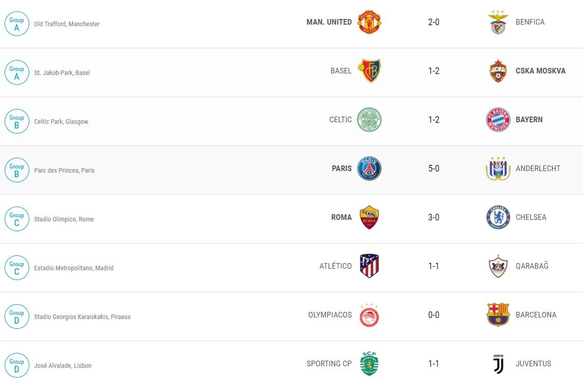 Όλα τα σημερινά αποτελέσματα του Τσάμπιονς Λιγκ: