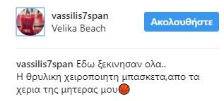 Την πρώτη του ανάρτηση στον προσωπικό του λογαριασμό στο instagram έκανε ο Βασίλης Σπανούλης.