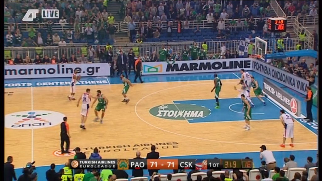 Σ΄ ένα συγκλονιστικό ματς, ο Παναθηναϊκός επικράτησε με 73-72 στο ΟΑΚΑ της ΤΣΣΚΑ Μόσχας και ισοφάρισε σε 2-2 την σειρά των πλέι οφ της Ευρωλίγκας. Το πέμπτο και καθοριστικό παιχνίδι θα διεξαχθεί την Παρασκευή στη Μόσχα. Οι πρωταθλητές Ελλάδας βρέθηκαν να χάνουν με 68-71, 47 δευτερόλεπτα πριν το τέλος της παράτασης, αλλά ένα εκπληκτικό τρίποντο του Φώτση από τα 8 μέτρα και δύο βολές του Διαμαντίδη μετέτρεψαν το σκορ σε 73-71. Ο Γουίμς ευστόχησε σε μία από τις δύο βολές, ο Διαμαντίδης δεν κατάφερε να συγκρατήσει τη μπάλα. Στην επαναφορά, όμως, οι Ρώσοι υπέπεσαν σε παράβαση και έτσι ο Παναθηναϊκός πήρε τη μεγάλη νίκη.
