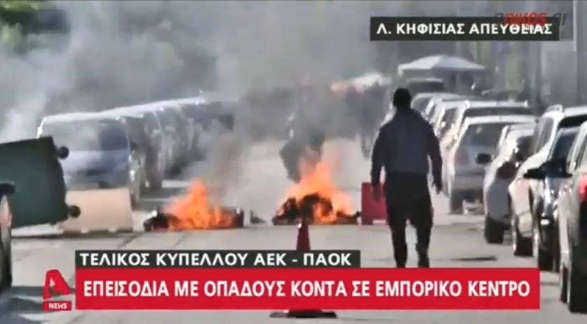 Νέα εστία ένταση κοντά στο ΟΑΚΑ όπου θα διεξαχθεί ο τελικός Κυπέλλου μεταξύ ΑΕΚ και ΠΑΟΚ αυτή τη φορά έξω από το Golden Hall όπου έπεσαν χημικά και μολότοφ.