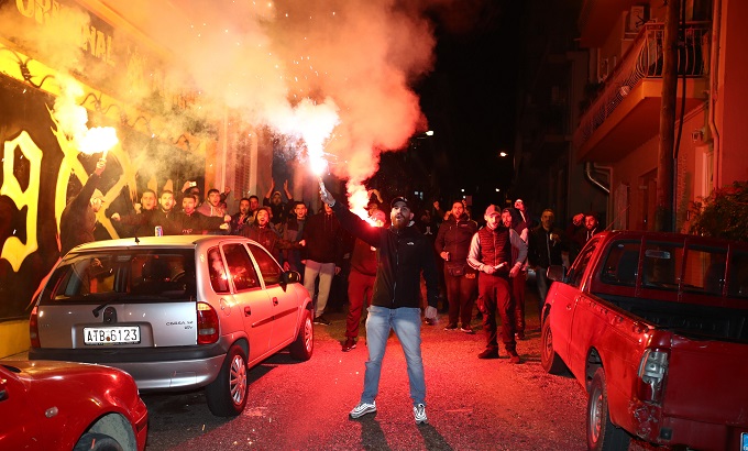 Οι «Ενωσίτε»ς καλωσόρισαν τον Μαρίνο Ουζουνίδη και τους παίκτες στην πόλη, ζητώντας τους με συνθήματα τη νίκη επί της ομάδας του Τραϊανού Δέλλα και το πρωτάθλημα.