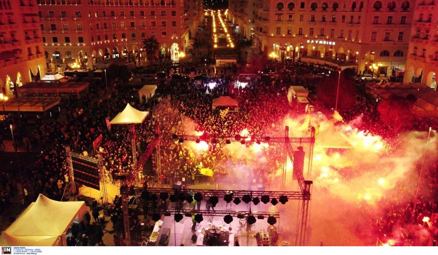 Η νύχτα έγινε μέρα στο κέντρο της Θεσσαλονίκης από χιλιάδες φίλους των “κίτρινων”, που συγκεντρώθηκαν στις εορταστικές εκδηλώσεις της ομάδας, με αφορμή 110α γενέθλια από την ίδρυση του συλλόγου.