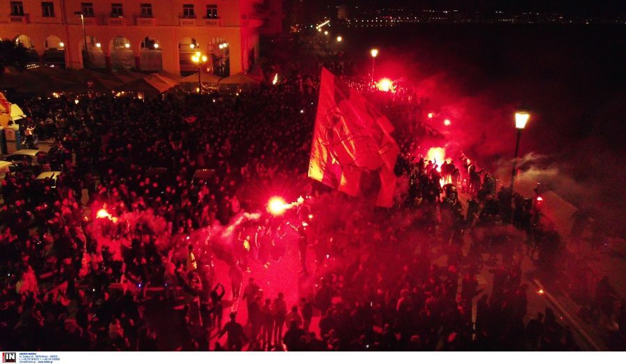 Πανζουρλισμός στην πλατεία Αριστοτέλους, ανήμερα της εθνικής επετείου της 25ης Μαρτίου, καθώς ο Άρης συμπλήρωσε 110 χρόνια ζωής και γιορτάστηκε δεόντως από τους φιλάθλους της ομάδας. Πλήθος κόσμου συγκεντρώθηκε στο κέντρο της πόλης, μαζί με τα τμήματα του συλλόγου και η νύχτα έγινε μέρα.