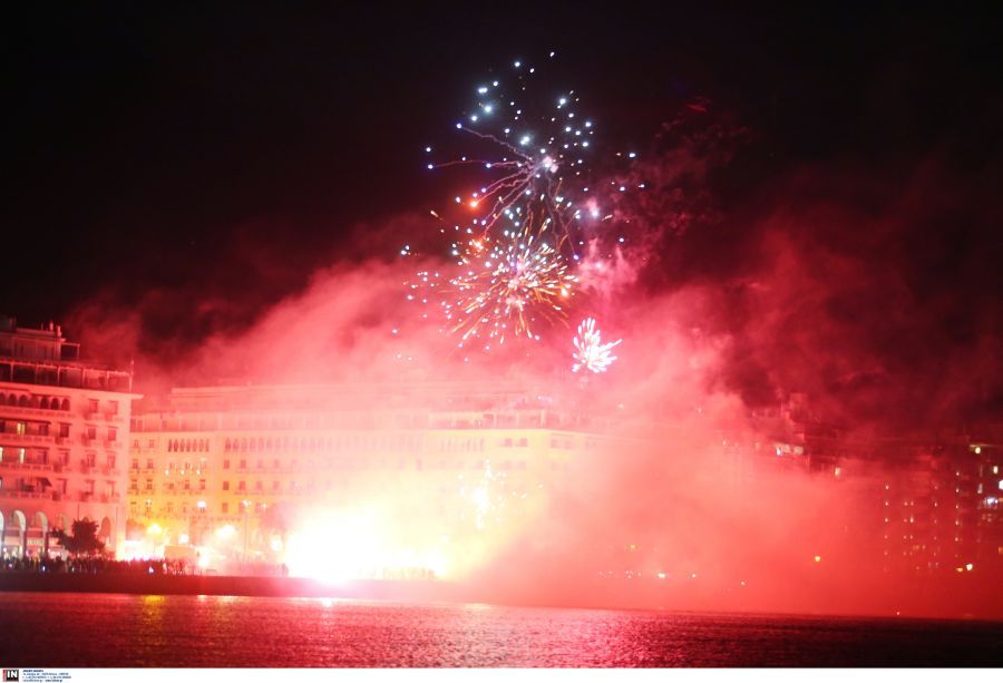 Οι παίκτες του ποδοσφαίρου και του μπάσκετ, που αγωνίζονται τη φετινή σεζόν με τα χρώματα του Άρη, γνώρισαν την αποθέωση από τον κόσμο και η πλατεία πήρε… φωτιά μόλις το ρολόι έδειξε 19:14, καθώς το 1914 είναι το έτος ίδρυσης του συλλόγου. Τότε, επικράτησε χαμός με εκατοντάδες καπνογόνα και βεγγαλικά να φωτίζουν τον ουρανό της Θεσσαλονίκης.